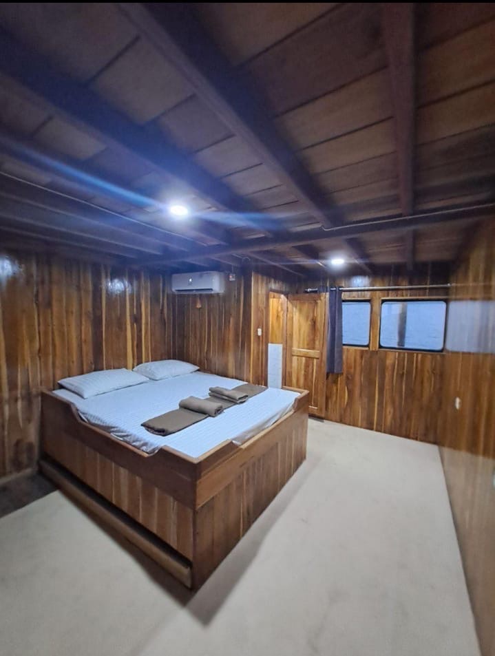 Upper deck cabin with private Bathroom , air conditioner and a Queen Bed. This cabin accommodates up to 2 – 4 people with an optional extra bed