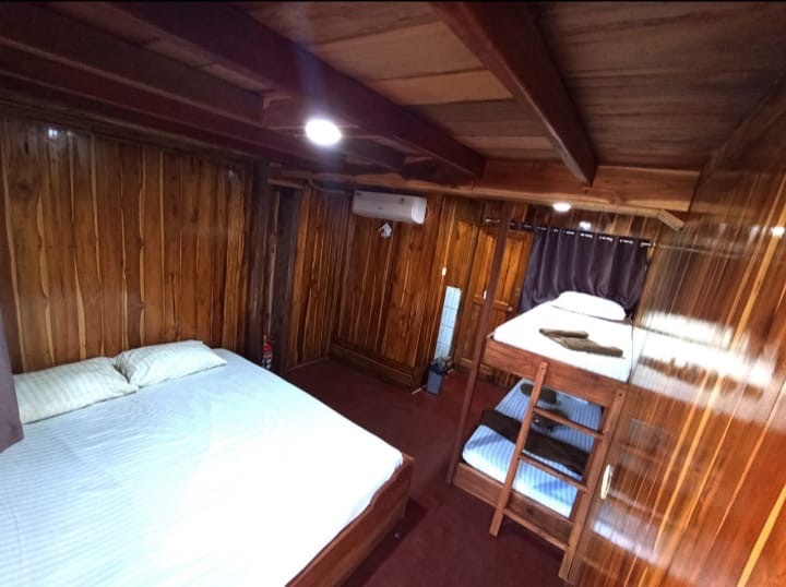 Located in main deck provide with 4 single bunk bed, air conditioner with sharing Bathroom ( inside) this Cabin is good For small group or Traveler on Budget